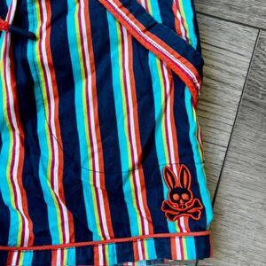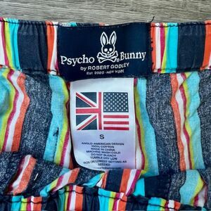 Psycho Bunny Robert Godley striped shorts cotton pockets summer beach fun in size small.
