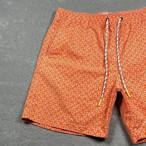 Psycho Bunny Swim Trunks Mens L Orange Geometric Checkered Preppy Summer No Line
