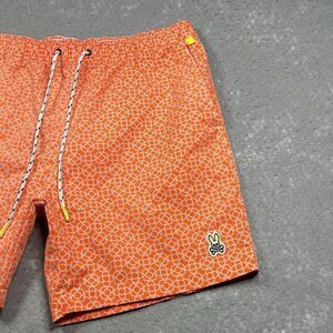Up for sale: Psycho Bunny Swim Trunks Mens L Orange Geometric Checkered Preppy Summer No Liner