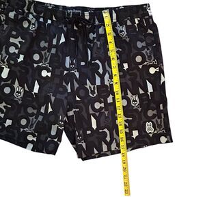 Psycho Bunny Swim Trunks Mens XL Black All Over Print Drawstring Lined Pockets