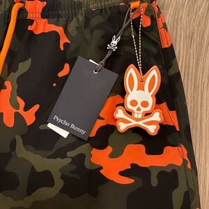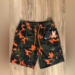 The NWT Psycho Bunny Swim Trunks in Men's XS size with a 28 waist and 8 inseam feature a stylish Ombré pattern with a cute Bunny character design. Made from lightweight and breathable polyester knit fabric, these swim trunks are water-repellent and quick-drying, making them perfect for various water activities like surfing, lifeguarding, and recreational swimming. The front slash pockets and elastic waistband provide comfort and practicality, while thePsycho Bunny brand adds a touch of designer flair to your beach or poolside look.