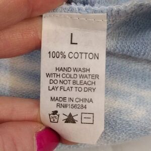 Surfer Skater Wear! White with pastel tie dye prints (yellow, blue & purple). Pullover sweatshirt style, with attached hood. Neon Psycho Tuna print, on front chest & back. Long sleeves. Cropped, & oversized (wide), style. Super comfy & relaxed! 100% cotton
