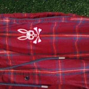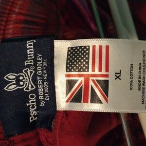 psycho bunny pajama pants men red plaid the blue stripes light fading size extra large pre-owned smoke-free