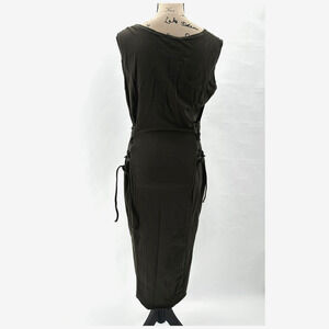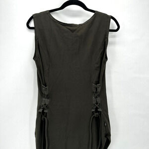 Psylo Festival Dress Womens 4 Lace Up Brown Midi Slits Rave Club Goth Ethical