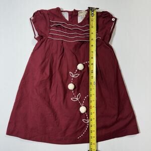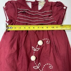 P’tite Môm Paris Toddler 4T Burgundy Cotton Dress Lined Pom Pom Embroidery EUC