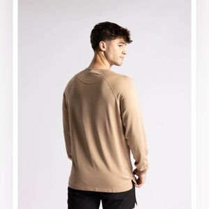 Tags: shirt, men’s, casual, long sleeve, tee, Tshirt, stretch, athletic, athleisure, activewear, gym, workout, fitness, studio, classic, neutral, tan, closet staple, capsule wardrobe, minimalist, contemporary, comfy, crew, travel