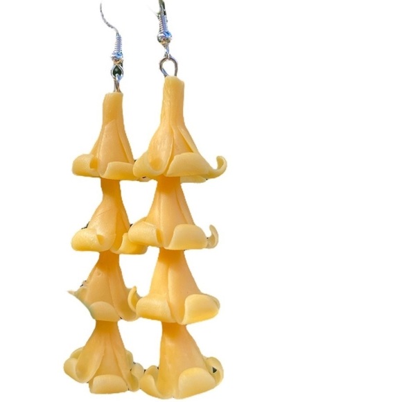 Puakenikeni / Fagraea Berteroana Flower Lei Four Tier Drop 925 Sterling Silver Pierced Dangle Earrings
