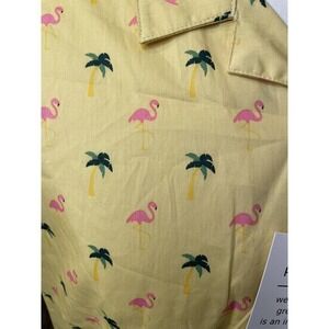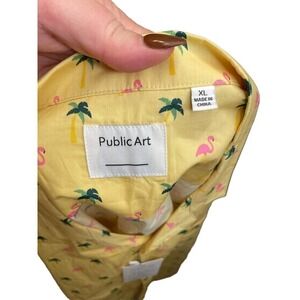 Public Art Flamingo Palm Men’s Yellow Short Sleeve Shirt Size XL