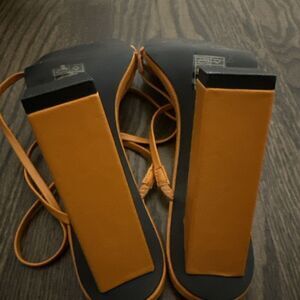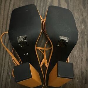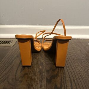 Public Desire Halley PU Strappy Block Heels Square Toe Glam Size 9 Orange