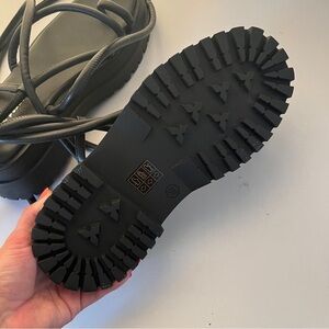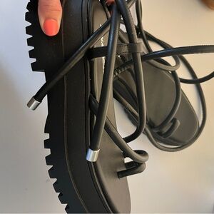 Public Desire Women's Strappy Wrap Black Flats Platform Sandals Size 6W