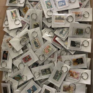 This unique keychain is handmade in Virginia, USA. We use real postage stamps that have traveled around the world and can travel again with you!