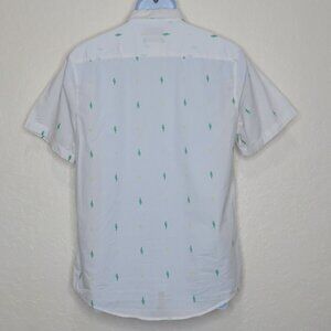 Pre-Owned Condition! 100% Cotton. Handsome Yellow & Green Cactus Print Design Single Chest Pocket Button Down Shirt with White Glossy Buttons(spare attached).