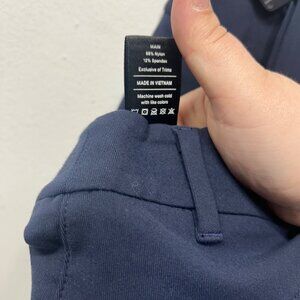 Public Rec women's pants in navy blue. All day style, cropped with a straight leg. Versatile, can be worn to the office or for sports like golf. Gently used with no flaws, size 28 by 26, See photo for approx. measurements in inches.