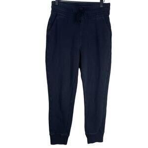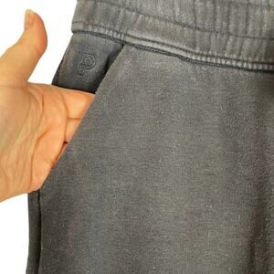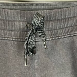 Good preowned condition, some minor fading, 82% Pima cotton, 9% polyester, 9% spandex, front pockets, elastic waist with drawstring, size 28/28