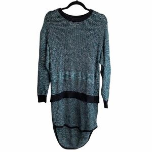 Public School brand oversized turquoise blue knit sweater dress with black detailing
