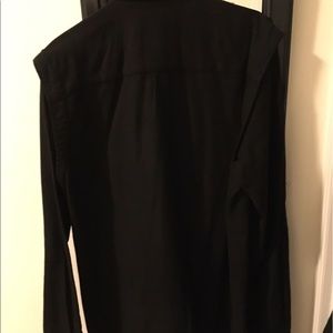 Men's wool button-up from Public School, subtle check print, concealed button closure, shoulder vents