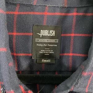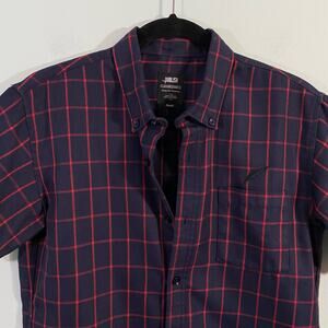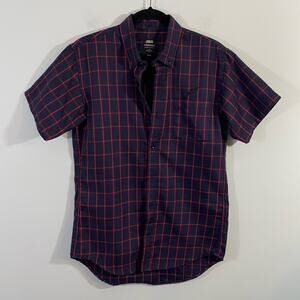 Publish Men's Navy & Red Plaid Short Sleeve Button Up Shirt Size S