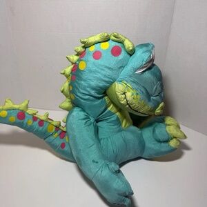 The Publix Dinosaur Plush Mascot Pluto Super Market Promo Toy is a 15-inch stuffed animal perfect for children of all ages. This vintage toy features a blue and green design that adds a fun and unique twist to the traditional dinosaur plush. With its small size and appealing design, this toy is sure to be a hit with kids who love animals and imaginative play. Perfect for both younger children and teenagers, this plush mascot is a great addition to any toy collection.