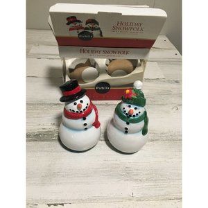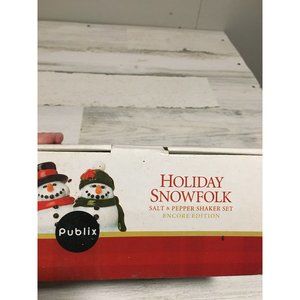 Publix Supermarket Holiday Snowfolk salt & pepper shaker set. Circa 2005. NWT