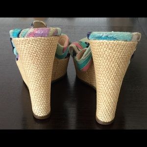 Pretty, fun wedge sandals by Pucci. They are really comfortable, and a great solution to the question of what to wear at the pool at a friend's house with shorts. Super elegant design and execution.