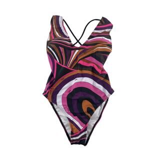 Pucci Pink Iride Print V-Plunge Backless One-Piece Swimsuit Size XL