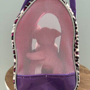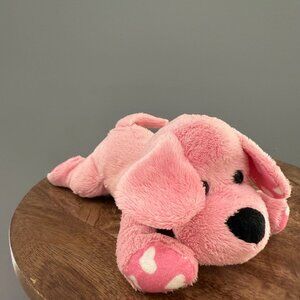 Puppy plushie with purse carrier. The puppy is about 8.5 inches long and pink.