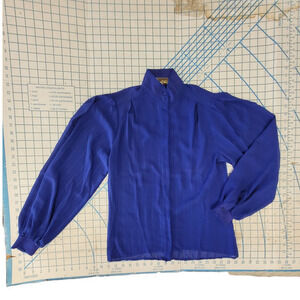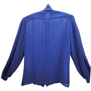 Puccini Gold Electric Blue Sheer Striped High neck Long Balloon Sleeve Invisible Button Front Vintage Blouse Top