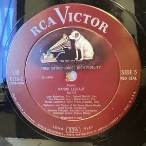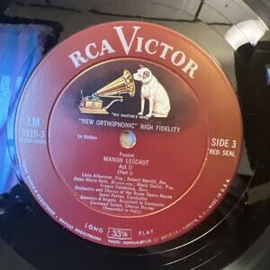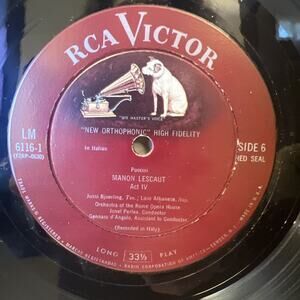 Ultrasonic cleaned and tested. Three vintage vinyl LPs in terrific condition. With original booklet containing a full libretto in Italian and English. Playback is EX! Please zoom in and examine the condition of the vinyl, box, and booklet. The cover is beautiful and has embossed detail. RCA Victor LM – 6116 Red Seal.