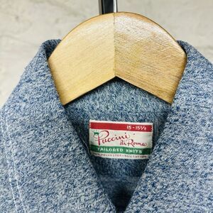 Puccini di Roma Vintage 60s 70s Knit Dagger Collar Spread Button Up Shirt