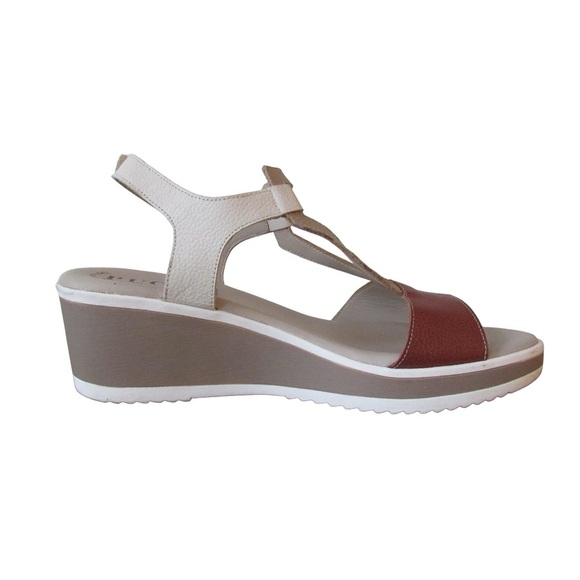 Elevate your style with these chic women's wedge sandals. Featuring a sophisticated blend of cream and brown, these sandals offer both comfort and elegance. Perfect for any occasion.