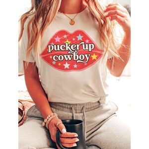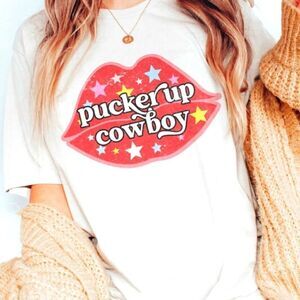 Pucker Up Cowboy T-Shirt. Super soft, 100% cotton, oversized graphic tee. If you prefer a more fitted look please size down.