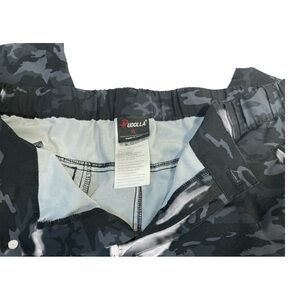Stylish black camo cargo shorts. Features multiple pockets. Comfortable fit.