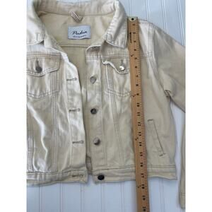 Pudra Cream Jean Denim Jacket Cropped Buttons Pockets Made in Egypt - Size XXL