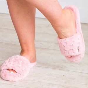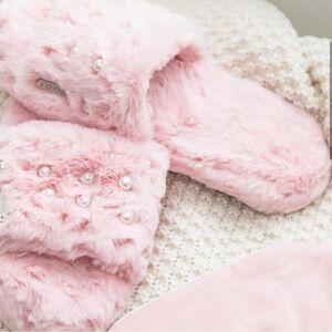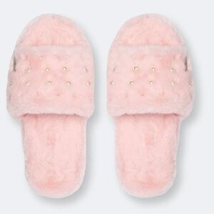 Pudus Audrey Faux Fur Pearl Slide Slippers Pink w/ Memory Foam Sz 9 Last Pair