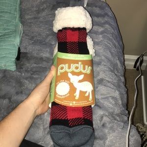 Red and black plaid, super soft, never worn and still packaged, slipper socks