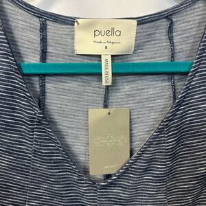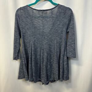 Puella Anthropologie Blue White Striped V-Neck Swing Top Small NWT