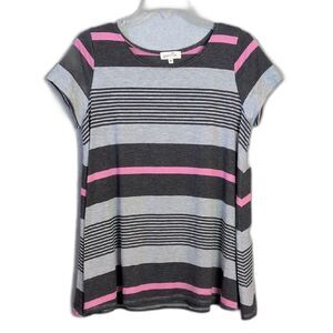 Puella Gray Pink Stripe Flowy Tee Women's M