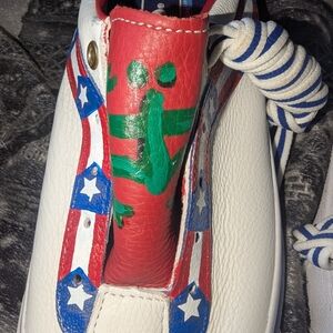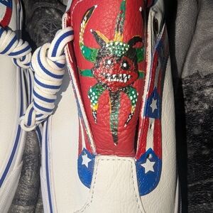 Custom pair Puerto Rican themed Vans. Featuring wording and painted pictures representing Puerto Rican culture. Unisex