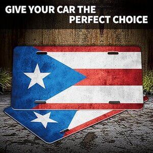 Puerto Rico Flag Car Front License Plate Cover Vintage Blue Red Puerto Rican