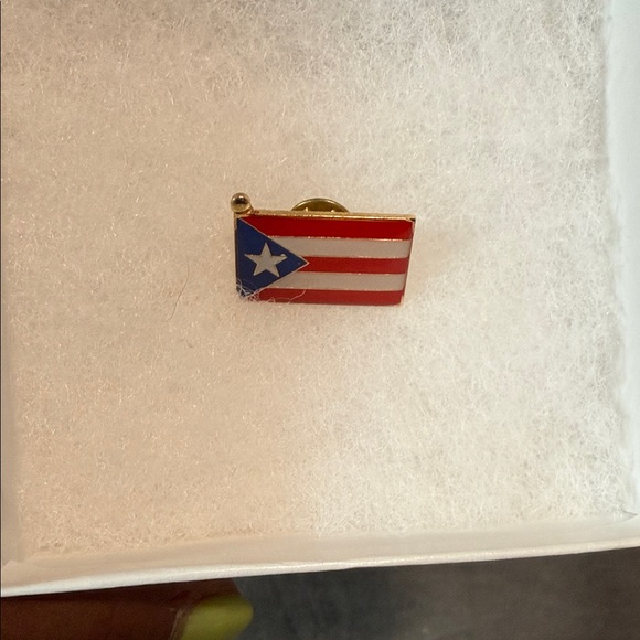 Stylish pin featuring the Puerto Rico flag. Perfect for adding a touch of patriotism to any outfit.