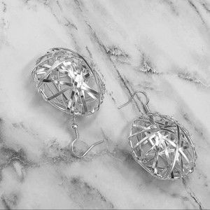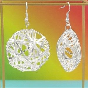🍀 Puff Disk Wire Wrapped Silver Dangle Earrings