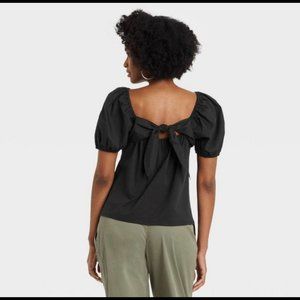 Puff Short Sleeve Tie-Back Top; Black, Small-A New Day. New with tags.