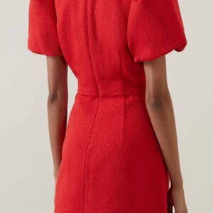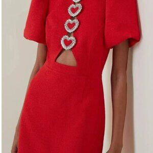 Puff Sleeve Cut-out Mini Dress Red Heart