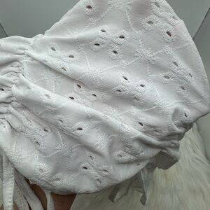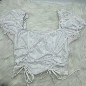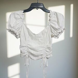 Puff Sleeve Frill Detail Faux Drawstring Ruched Top