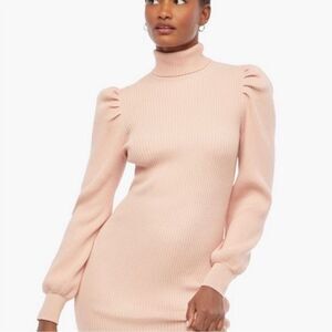 Puff Sleeve Ribbed Sweater Dress Womens Size 2X Pink Knit Long Sleeve JustFab