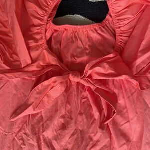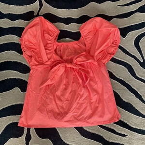 A New Day coral puffy sleeve top with tie back. Good condition.