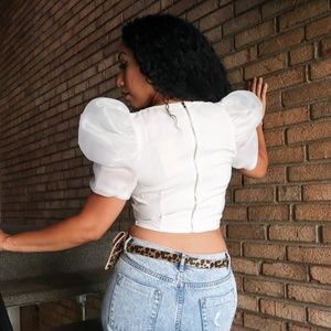 Our White Puff Top adds a bit of flair and seductive ballroom glamour to any look. The white top is cropped at the waist, making it perfect to pair with any pair of high-waisted bottoms. The puffed sleeves add a feminine element to the top and the deep v-neckline adds a perfect touch of seductive appeal. This top is a great way to add chic to a casual outfit. Very Comfortable.