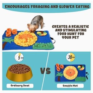 • Snuffle Mat Slows Eating: Snuffle mats help dogs, cats, and rabbits eat their food more slowly. This improves digestion, helps with weight control, and can prevent vomiting from fast eating.