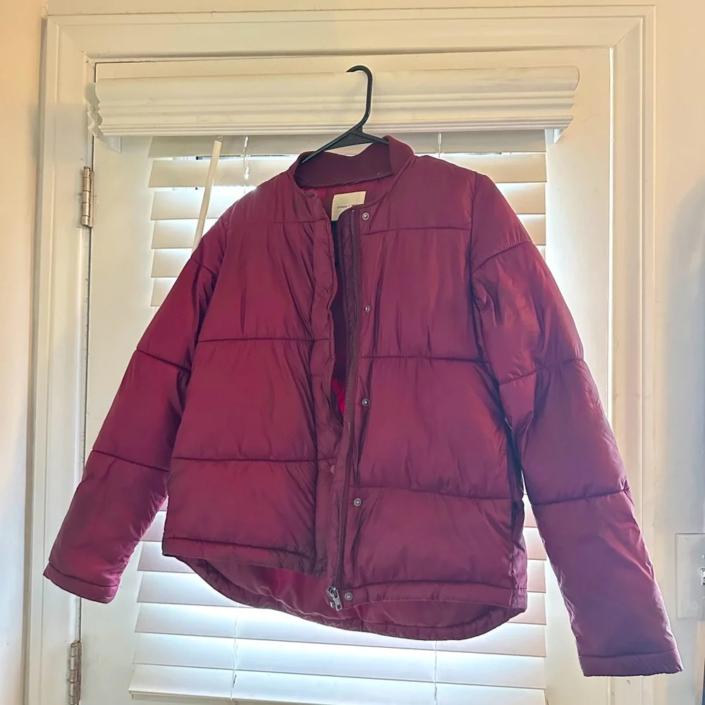 Burgundy puff jacket. In good condition. Very comfortable! Great for everyday use or dressing up an outfit.