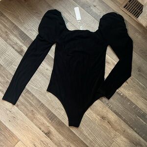 Black puff sleeve top from these three boutique! Brand new with tags! Snap crotch closure! Super soft stretchy material! Couldn’t find a clear stock picture🥲